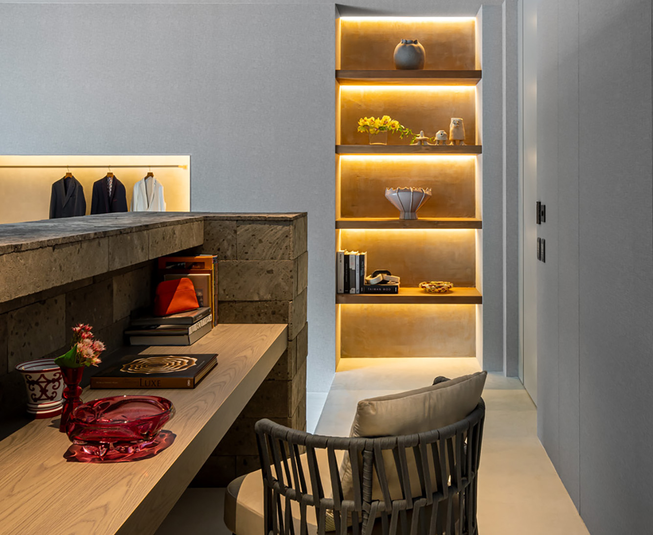 この二つが互いの魅力を引き立て合い、空間に上質な調和を生み出します。そんな生活と美が一体化した、心地よい空間を表現しています。